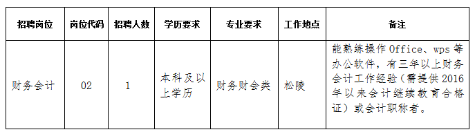 苏州市吴江区供销企业(集团)总公司下属企业因工作需要,面向社会公开招聘财务工作人员1名,现将招聘有关事项公布如下: