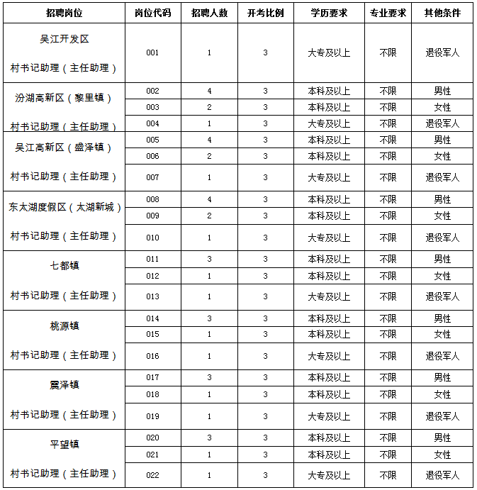招聘岗位为村书记助理(主任助理),属于农村基层一线岗位,适合男性。录用人员如为中 共党员(含预备党员)的,安排担任村书记助理;如不是中 共党员的,安排担任村主任助理。
