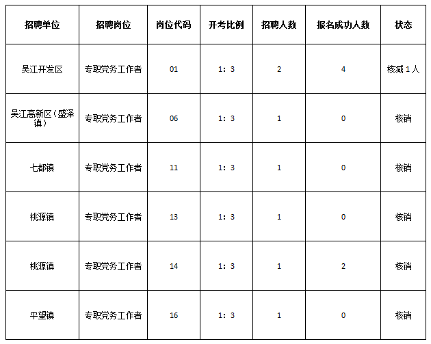 根据《简章》规定,报名结束后达不到开考比列的岗位,将按规定的程序办法核减招聘计划,直至取消岗位,现将取消岗位公布如下: