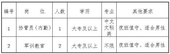 苏州市吴江区人民武装部(含下属民兵训练基地)因工作需要,面向社会公开招聘工作人员3名,现将招聘有关事项公布如下: