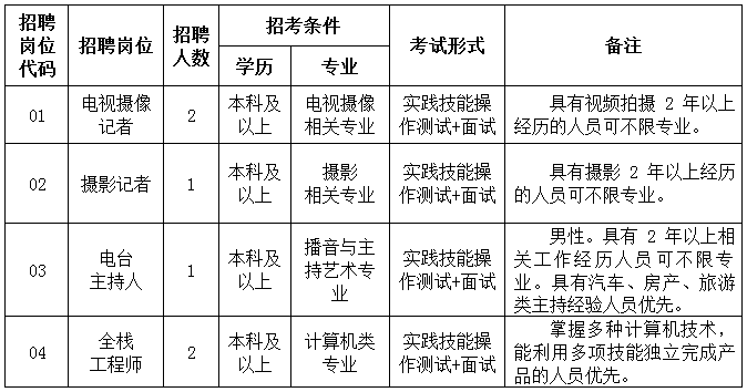 吴江区融媒体中心(传媒集团)拥有报纸、广播、电视、移动媒体矩阵、户外广告等媒介资源,属于苏州市吴江区委直属的事业单位,实行企业化管理,综合发展水平和经营实力位居全国同类媒体前列。因事业发展需要,本着“公开、平等、竞争、择优”的原则,现面向社会公开招聘企业合同制工作人员。