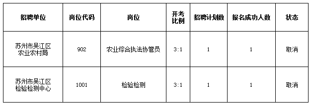 根据《简章》规定,报名结束后达不到开考比列的岗位,将按规定的程序办法核减招聘计划,直至取消岗位,现将取消岗位公布如下: