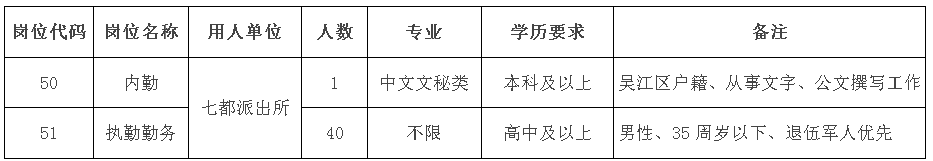 吴江区公安局七都派出所招录基层警务辅助人员岗位表