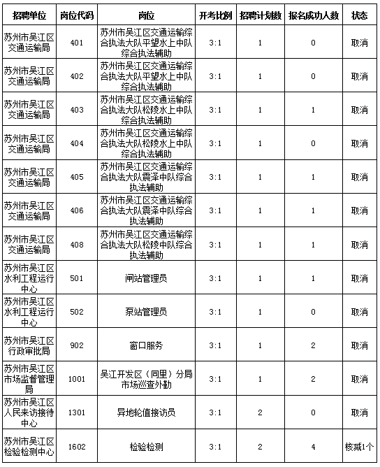 根据《简章》规定,报名结束后达不到开考比列的岗位,将按规定的程序办法核减招聘计划,直至取消岗位,现将取消岗位公布如下: