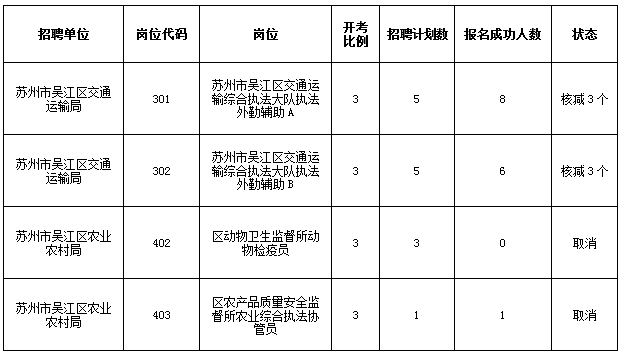 根据《简章》规定,报名结束后达不到开考比列的岗位,将按规定的程序办法核减招聘计划,直至取消岗位,现将取消岗位公布如下: