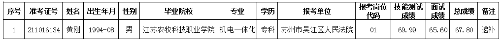 根据《苏州市吴江区人民法院招聘派遣制工作人员简章》,经过技能测试、面试、体检、考察(政审)等程序,以下拟聘用人员予以公示。