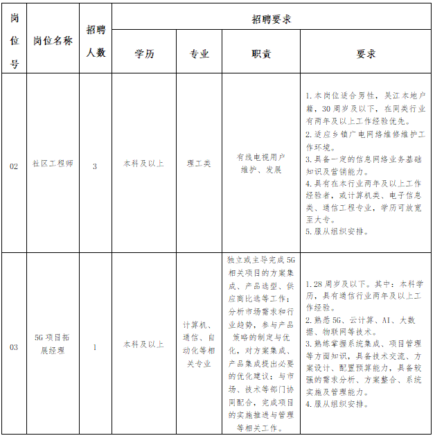 二、招聘岗位、人数及要求
