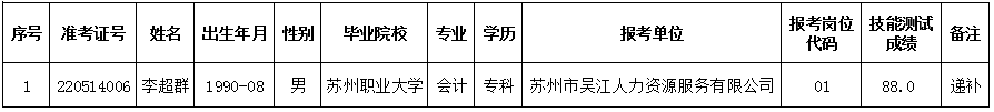 根据《苏州市吴江人力资源服务有限公司招聘驾驶员简章》,经过技能测试、体检、考察(政审)等程序,以下拟聘用人员予以公示。