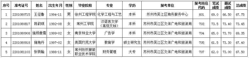 根据《苏州市吴江区2021年第二次部分机关事业单位招聘派遣制工作人员简章》,经过笔试、面试、体检、考察(政审)等程序,以下拟聘用人员予以公示。