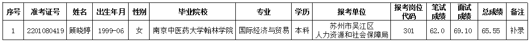 根据《苏州市吴江区2021年第二次部分机关事业单位招聘派遣制工作人员简章》,经过笔试、面试、体检、考察(政审)等程序,以下拟聘用人员予以公示。